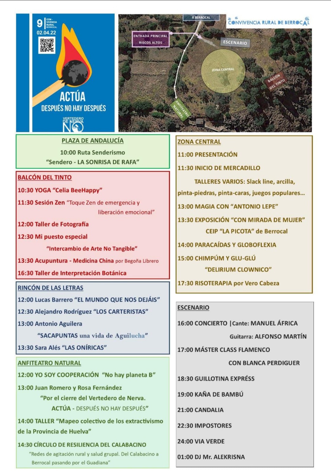El programa para esta nueva edición es amplio y muy variado, incluyendo desde rutas de senderismo hasta conciertos, pasando por sesiones de Yoga y Zen, taller de fotografía, acupuntura, interpretación botánica, charlas, mercadillo, exposiciones, etc.