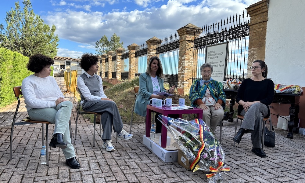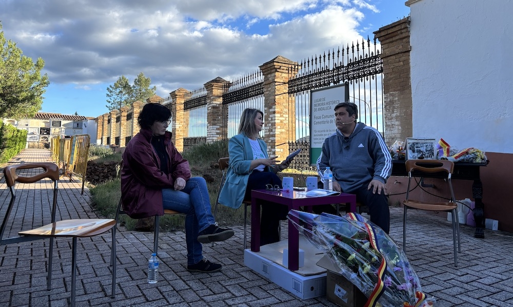 La programación continuó nuevamente en el cementerio, donde la periodista local, Vanesa Navarro Calero, llevó a cabo la grabación en directo de un nuevo episodio de su podcast ‘Cuantas Aran y Cavan’, bajo el título “Memoria con voz de mujer”. En este espacio, centrado en la memoria histórica de la Cuenca Minera, participaron Mari Moreno, hija de Rocío Rodríguez Castilla; María del Carmen Lozano y Ani Lozano, sobrinas de Catalina Chaves Pacheco; y María Pozo, bisnieta del Doctor Cristobal Roncero, que compartieron sus propios testimonios familiares. El segundo bloque del podcast fue dedicado a las aportaciones técnicas, con las intervenciones de Andrés Fernández, director del equipo de arqueólogos y la historiadora Maribel Brenes, implicados en los trabajos de exhumación de fosas.