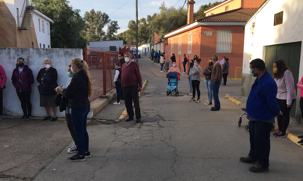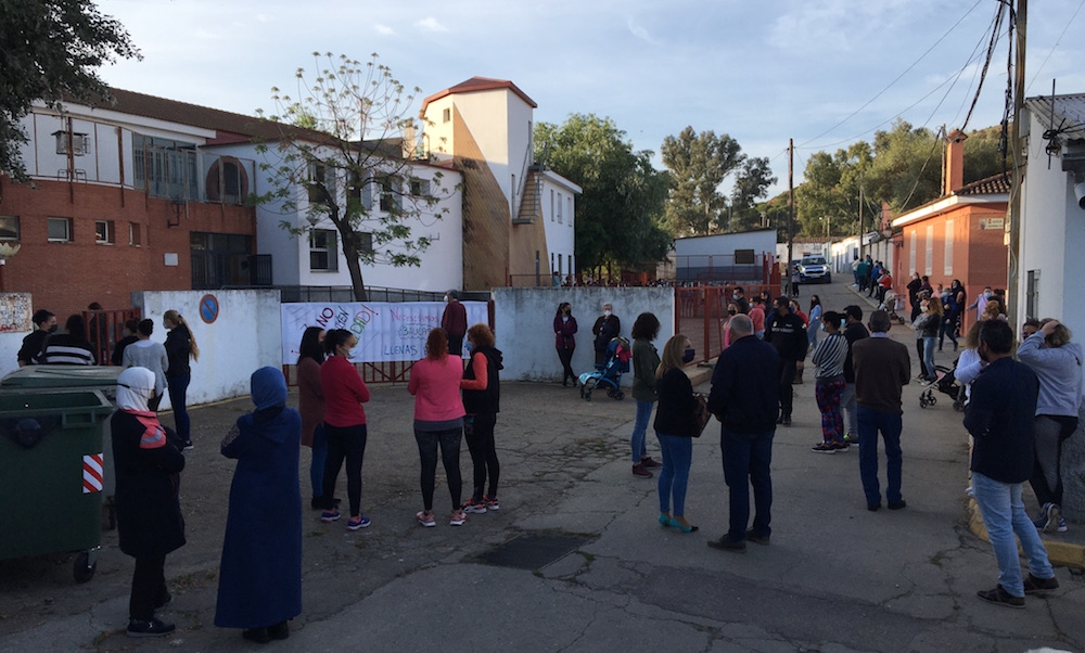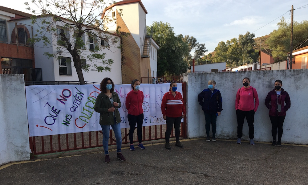 Madres y padres de alumnos del CEIP Maestro Rojas de Nerva se han concentrado esta mañana a las puertas del colegio para protestar por la eliminación de una de las líneas de educación infantil de 4 años que la Delegación Territorial de Educación y Deporte de la Junta de Andalucía llevará a cabo el próximo curso escolar 2021-22. La medida conllevaría la reducción del profesorado en una maestra menos y la agrupación en dos clases de 25 y 26 alumnos de 4 años, muchos de ellos con necesidades específicas.
