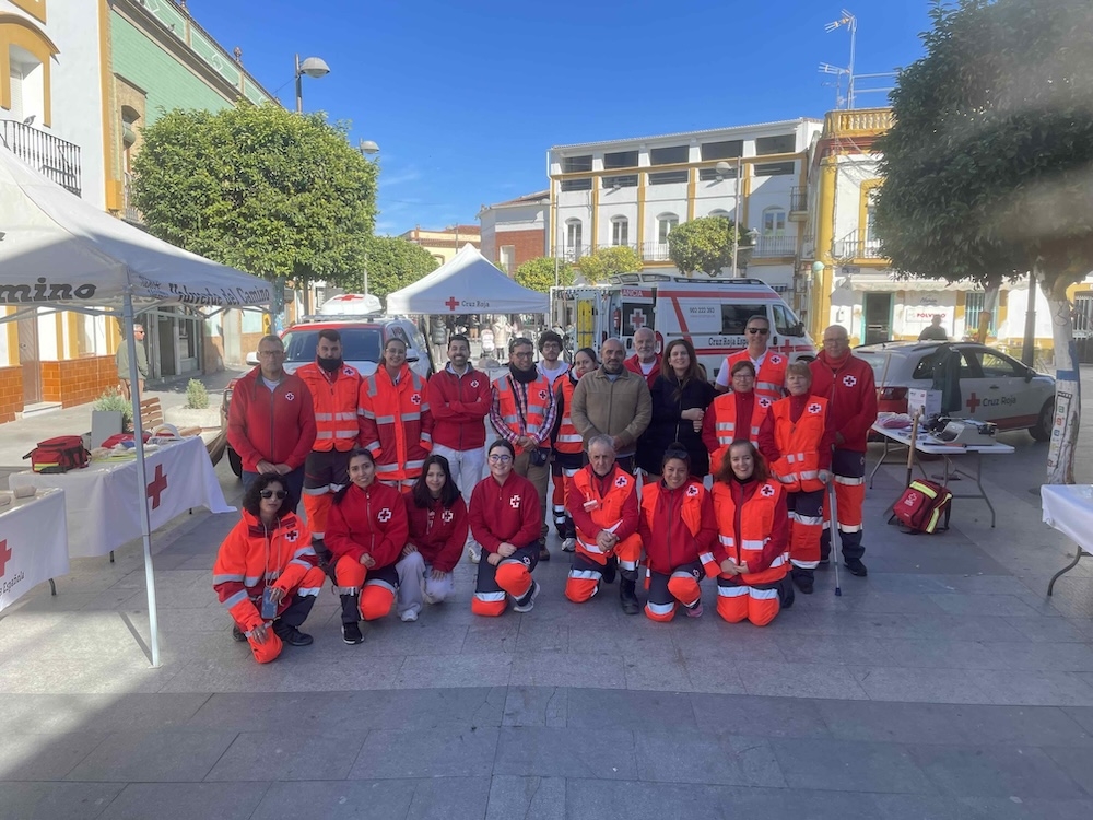 Cruz Roja ha mostrado esta mañana en Nerva todo su potencial básico de emergencias a través de sus equipos de actuación comarcales en una jornada de muestra, talleres y vida asociativa celebrada en el paseo de la localidad minera. En la actividad han participado voluntarios y voluntarias procedentes de Valverde del Camino, Cortegana, Cartaya y Huelva, además de la propia Asamblea Comarcal de Nerva.