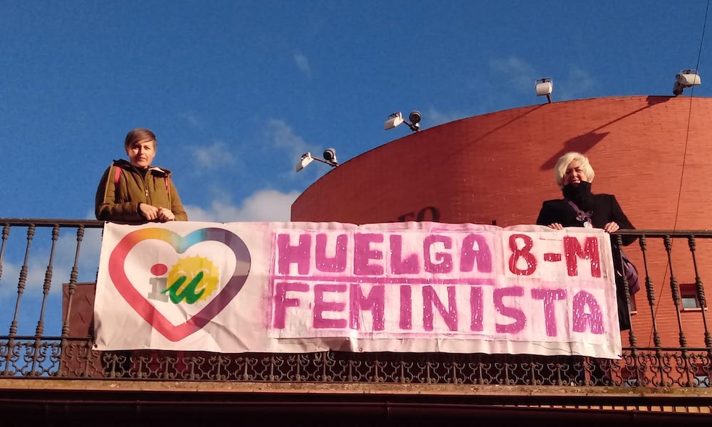 Según informan desde IU-Nerva a través de esta nota de prensa, el Grupo municipal de Izquierda Unida presentó una moción de apoyo en el pleno del pasado mes de febrero para que el Ayuntamiento se implicara en este día y fomentara la participación en la huelga feminista, utilizando para ello todos los medios materiales, personales y de difusión de las manifestaciones, concentraciones, actividades y actos que convoquen las asociaciones de mujeres por la huelga feminista. Dicha moción resultó aprobada, “pero el PSOE de Nerva no va a cumplir con lo acordado, al programar para la jornada de mañana una amplia agenda de actividades que no están relacionadas con la huelga feminista”, según denuncia Isabel Lancha. Además, para este día tan importante para las reivindicaciones de las mujeres, la moción recoge que se enarbole la bandera feminista en el balcón de la fachada del Ayuntamiento como símbolo de apoyo a la lucha de las mujeres.