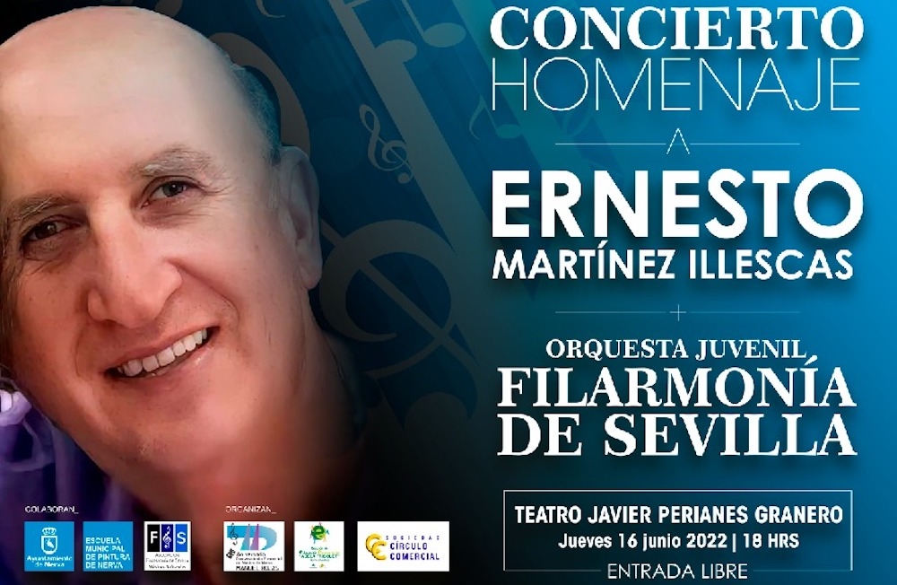 El próximo jueves 16 de junio por la tarde, el Conservatorio de Música Manuel Rojas de Nerva, la Sección de Educación Permanente SEPER Adela Frigolet y el Círculo Comercial de Nerva, en colaboración con el Ayuntamiento de Nerva y la Escuela Municipal de Pintura Antonio León, tributarán un más que merecido homenaje a Ernesto Martínez Illescas, primer nervense fallecido por COVID en 2020 a la edad de 69 años.