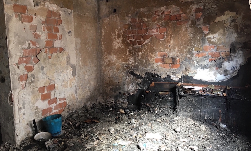 El jefe Parque Bomberos Cuenca Minera, Marco Antonio López baraja la hipótesis de que el fuego podría haberse iniciado en el brasero del salón de la vivienda ubicada en la planta segunda. “El brasero del salón está completamente calcinado. Esta parte de la vivienda ha sido la que mayor carga térmica ha registrado. Los perros podrían haber correteado alrededor del brasero hasta prenderse. De hecho, a dos de los tres animales con los que vivían los hemos encontrado calcinados”, argumenta.