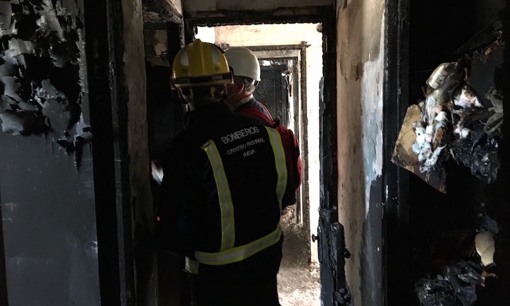 El Consorcio Provincial de Bomberos de Huelva intervino en la extinción del incendio con dos dotaciones procedentes de los parques de Riotinto y Valverde, compuesta por 6 operativos (6 bomberos y un jefe de parque) y 5 vehículos (4 de extinción). Para entonces, la mayoría de los vecinos del bloque afectado habían salido por su propio pie, otros tuvieron que ser rescatados al quedar atrapados por el fuego, y una mujer tuvo que saltar desde el tercero, amortiguando su caída los propios vecinos con una manta.