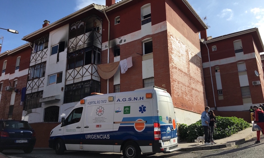 Un incendio registrado en el bloque de viviendas número 3 de la barriada de La Garza en Nerva, de protección pública, ha obligado al desalojo de dos familias tras arder gran parte del hogar del principal afectado, ubicado en la segunda planta, y en mucha menor medida la de su vecino en la tercera. Afortunadamente, no ha habido que lamentar pérdidas humanas, más allá de la muerte de dos animales de compañía, y los numerosos daños materiales sufridos en ambas viviendas.