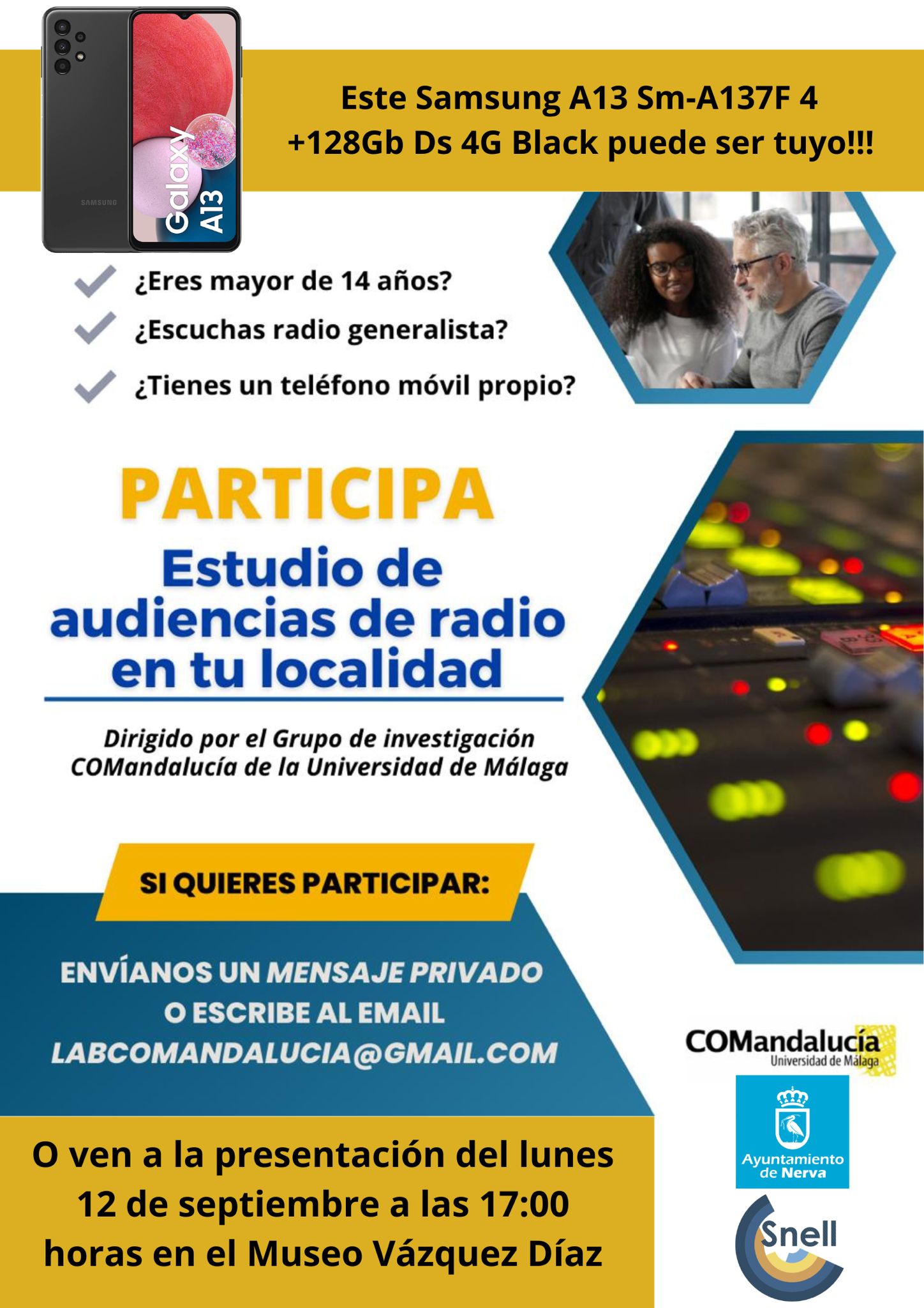 Nerva participará, junto a otras cuatro localidades andaluzas, en un proyecto de medición de audiencias para emisoras de radio desarrollado por el Laboratorio de Comunicación de COMandalucía de la Universidad de Málaga.