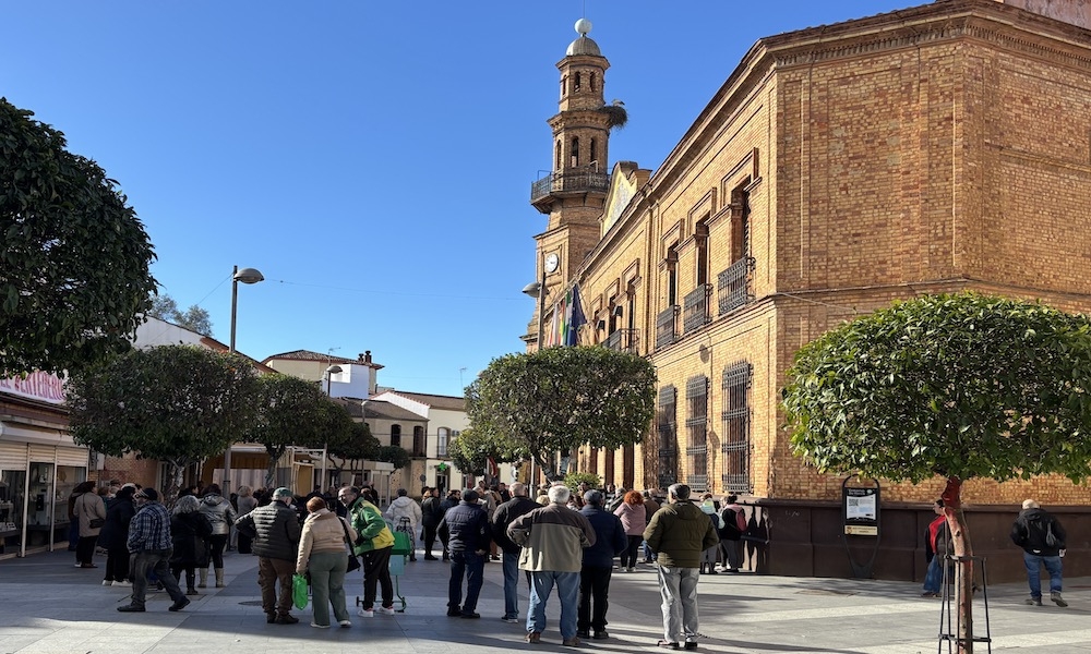 Autoridades locales y vecinos de Nerva se han congregado en las puertas del Ayuntamiento para guardar un minuto de silencio en memoria de las víctimas del trágico accidente de tren ocurrido en Adamuz (Córdoba).