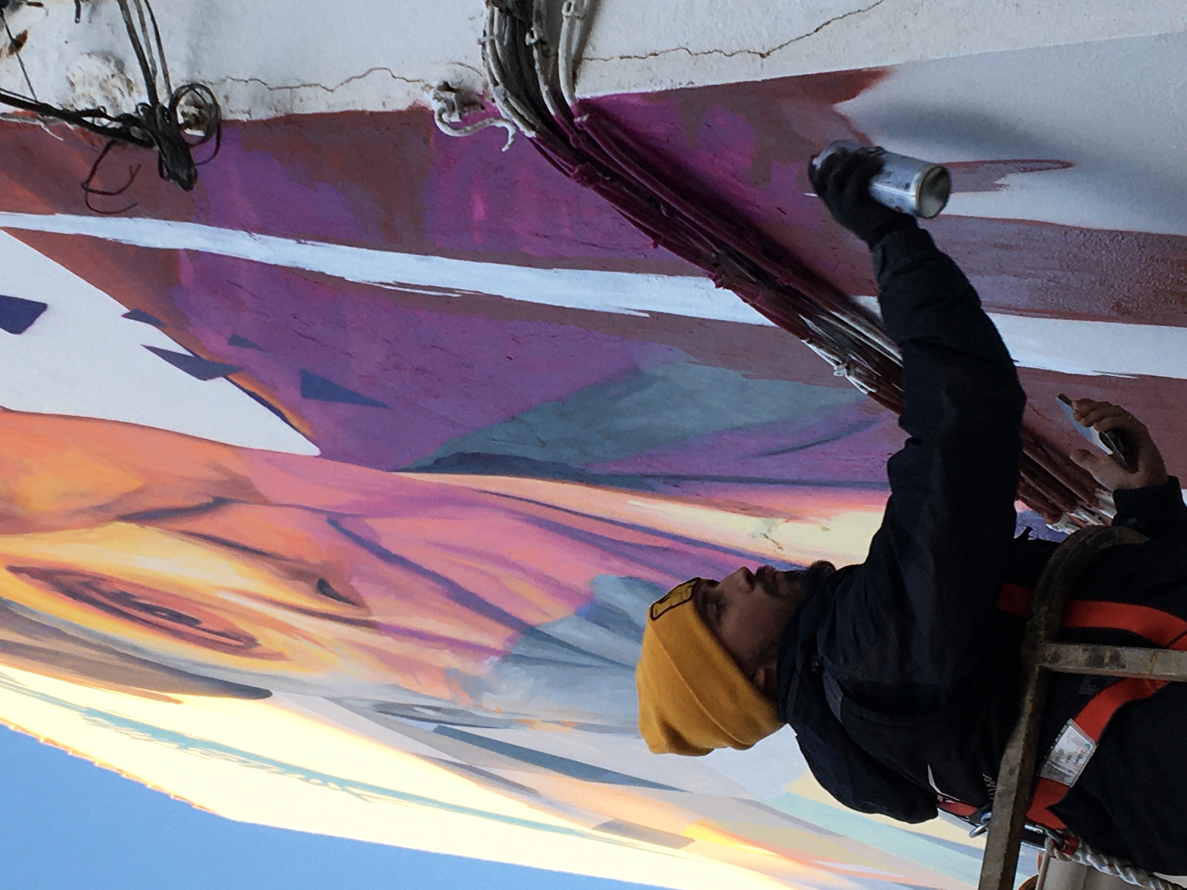 El grafitero, que estudió el Bachillerato Artístico y Proyecto y Dirección de Obras de Decoración en la Escuela de Arte León Ortega de Huelva, además de Diseño Gráfico en el IES Diego de Guzmán y Quesada, ha empleado en la obra más de un centenar de botes de spray sintético, con una amplia gama de colores. Esta no es ,ni mucho menos, su primera obra de grandes dimensiones, pero sí una de las que más dificultad le ha conllevado por la inclinación del terreno y las características de la fachada que continua por el tejado de otro edificio.