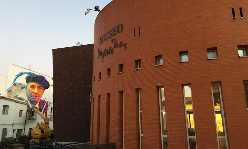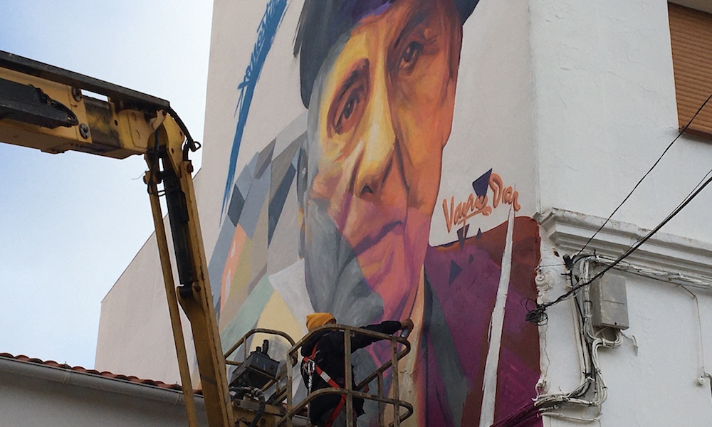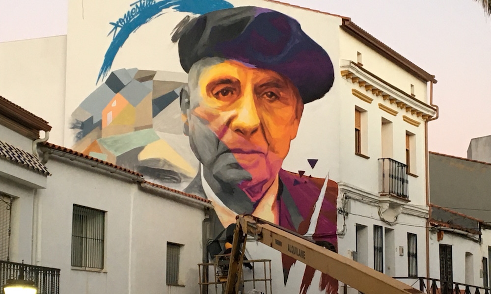 “Magnífico, impresionante, espectacular, fantástico, excelente, precioso, divino…”. Estos son algunos de los calificativos, entre innumerables felicitaciones de enhorabuena como muestra de aprobación, que inundan las redes sociales en Nerva durante estos días, y se comenta de viva voz en el entorno del Museo Vázquez Díaz de la localidad minera. Los halagos de los nervenses van dirigidos al grafitero onubense Víctor Romero, alias Konestilo, que desde el día 22 y hasta mañana viernes 26 de noviembre se encuentra realizando un mural homenaje a la figura del artista Daniel Vázquez Díaz en el entorno del Centro de Arte Moderno y Contemporaneo que lleva el nombre del insigne pintor. La actividad forma parte de los eventos inscritos en el proyecto "La genialidad de Andalucía. 28 años de la Beca Daniel Vázquez Díaz (1993-2021)" de la Diputación de Huelva.