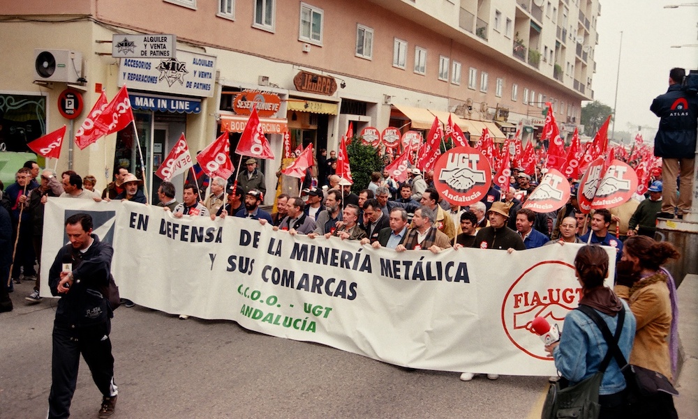 El 7 de febrero de 2002 una columna minera formada por más de un centenar de trabajadores de las minas de Riotinto, en su inmensa mayoría afiliados al sindicato CC.OO., iniciaba una caminata de cinco días hasta Sevilla para exigir a las Administraciones central y autonómica una solución definitiva a la crisis minera que estaban soportando, la más aguda de los últimos tiempos. Por eso, al acto de presentación en la capital onubense asistirá la secretaria general de las Comisiones Obreras de Huelva, Julia Pera; y a la de Nerva, al día siguiente, lo harán muchos de los mineros que participaron en aquella marcha, con Ricardo Gallego, autor del prólogo del libro, a la cabeza.