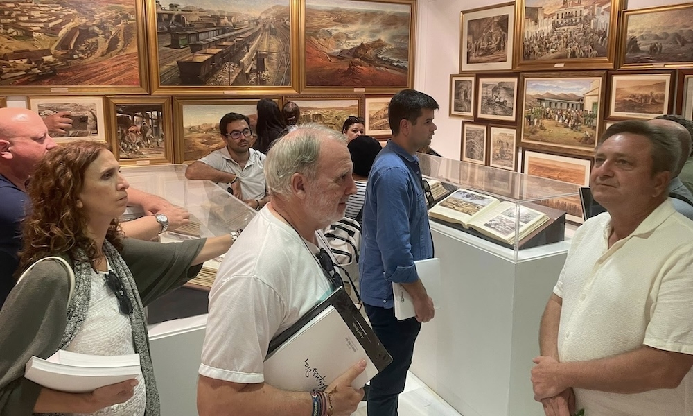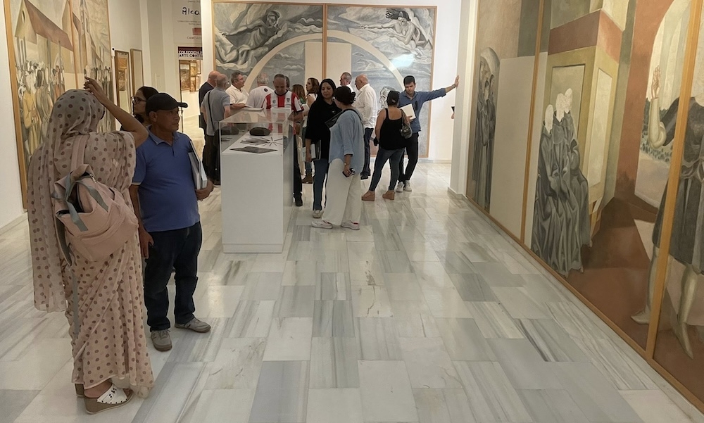 El grupo de periodistas andaluces y marroquíes también tuvieron oportunidad de admirar las obras del pintor de la mina, Antonio Romero Alcaide, expuestas en el Museo Vázquez Díaz, junto a los bocetos del Poema del Descubrimiento de Daniel Vázquez Díaz.