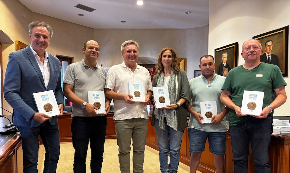 El Ayuntamiento de Nerva ha obsequiado a los periodistas con varios ejemplares del libro dedicado a la centenaria historia del Nerva CF, ‘100 años tras un balón’ obras de José Luis Lozano, además de otros tantos de ejemplares de diferentes ediciones dedicadas al artista nervense más universal, Daniel Vázquez Díaz.